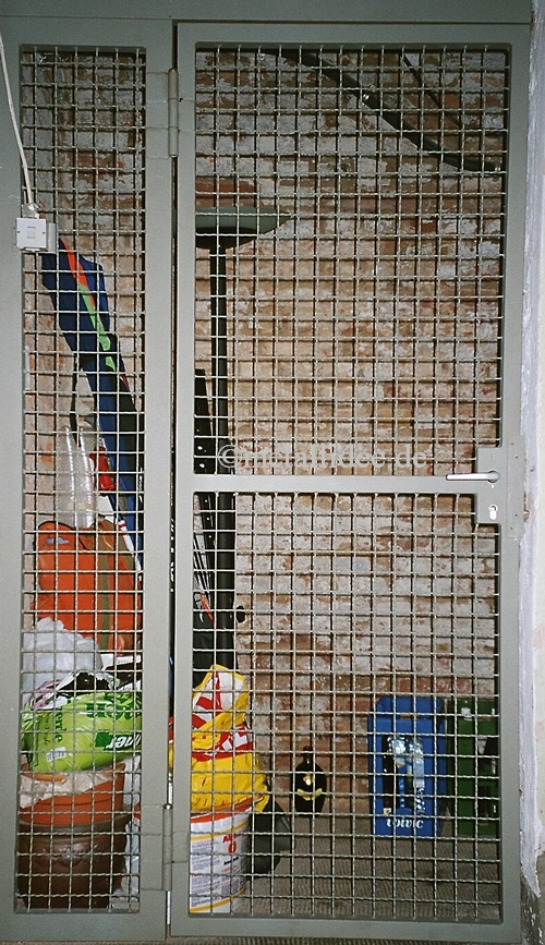 Eine 1-flg. Rohrrahmentür mit Wellengitterfüllung und AMF Schloßkasten + genietetes Sicherheitsschließblech. Ausfürhung grundiert.