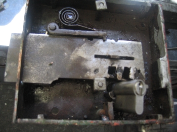 Ein historisches Schloß vor dem Umbau. Defekter Mechanismus innen.