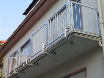Lösung Metallidee: Der Fliesenleger hat den Boden neu aufgebaut und wir haben ein Geländer unter der Betondecke und eins stirnseitig angebracht. Halter für den Sonnenschirm integriert. |