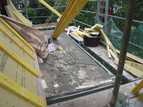 Aufgabe #230: Durch Frost ist der Terassenbelag (+ Decke) und das Geländer beschädigt.