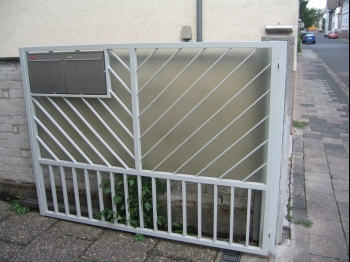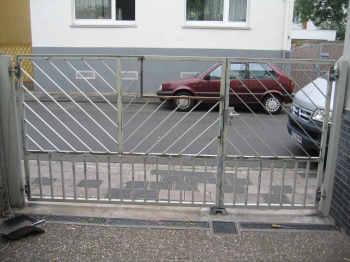 Lösung Metallidee: Tor ausbauen, Bänder neu anschweißen, säubern, strahlen und nach Farbwunsch pulvern. Montage bauseits.