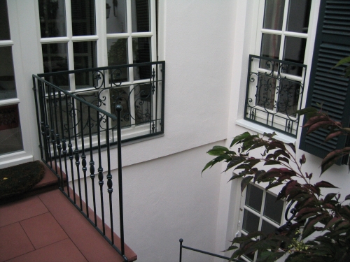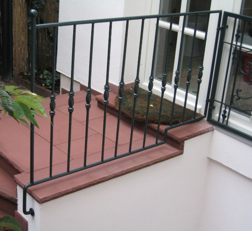 Treppgengeländer passend zum Haus gefragt. Montage ohne Putz und Sandstein zu beschädigen..................